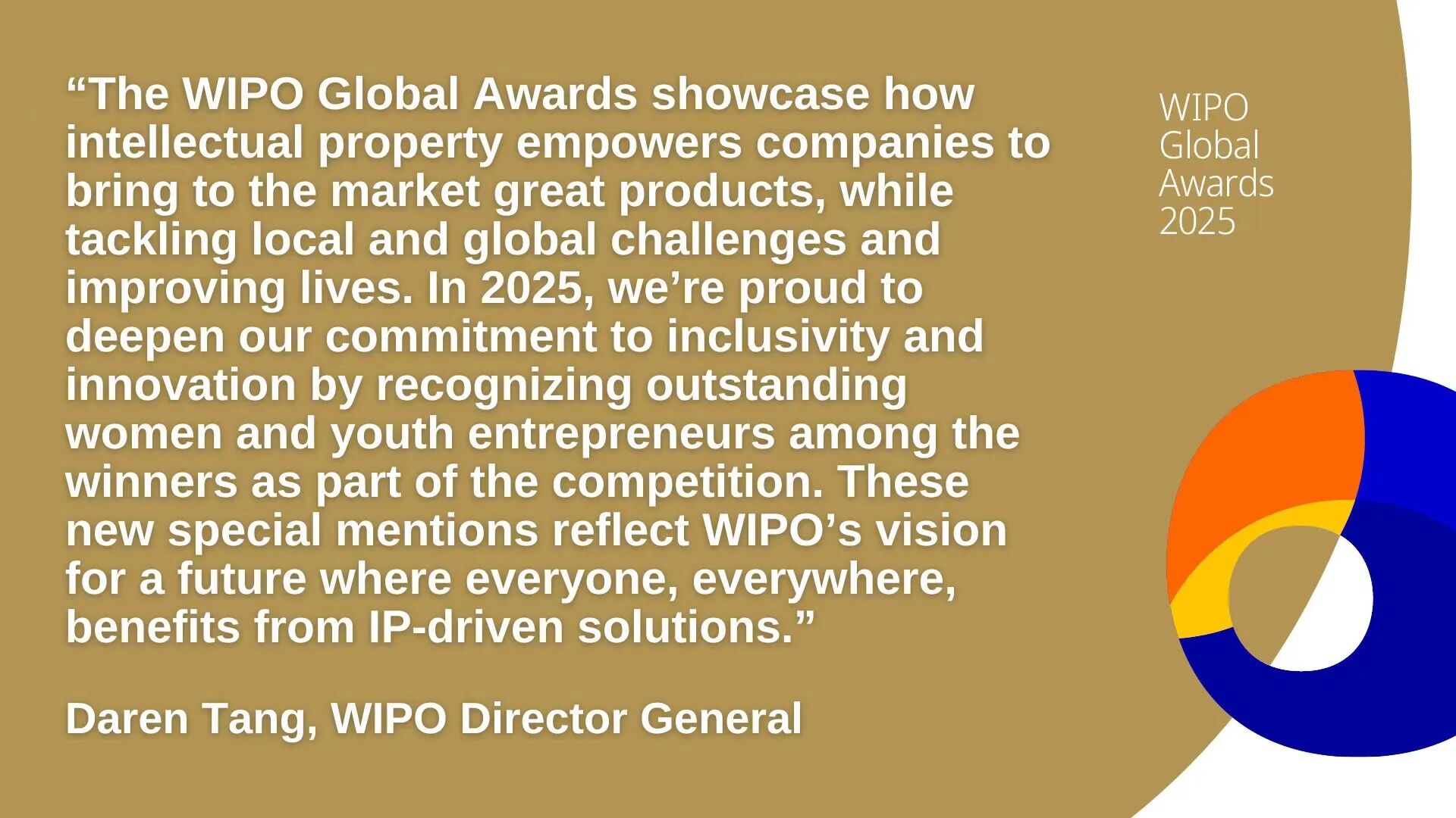 Applications for the 2025 WIPO Global Awards will close on March 31. The award is open to companies from all over the world. Representatives of the winning companies will be invited to attend the award ceremony at WIPO headquarters in Geneva, Switzerland, in July 2025.